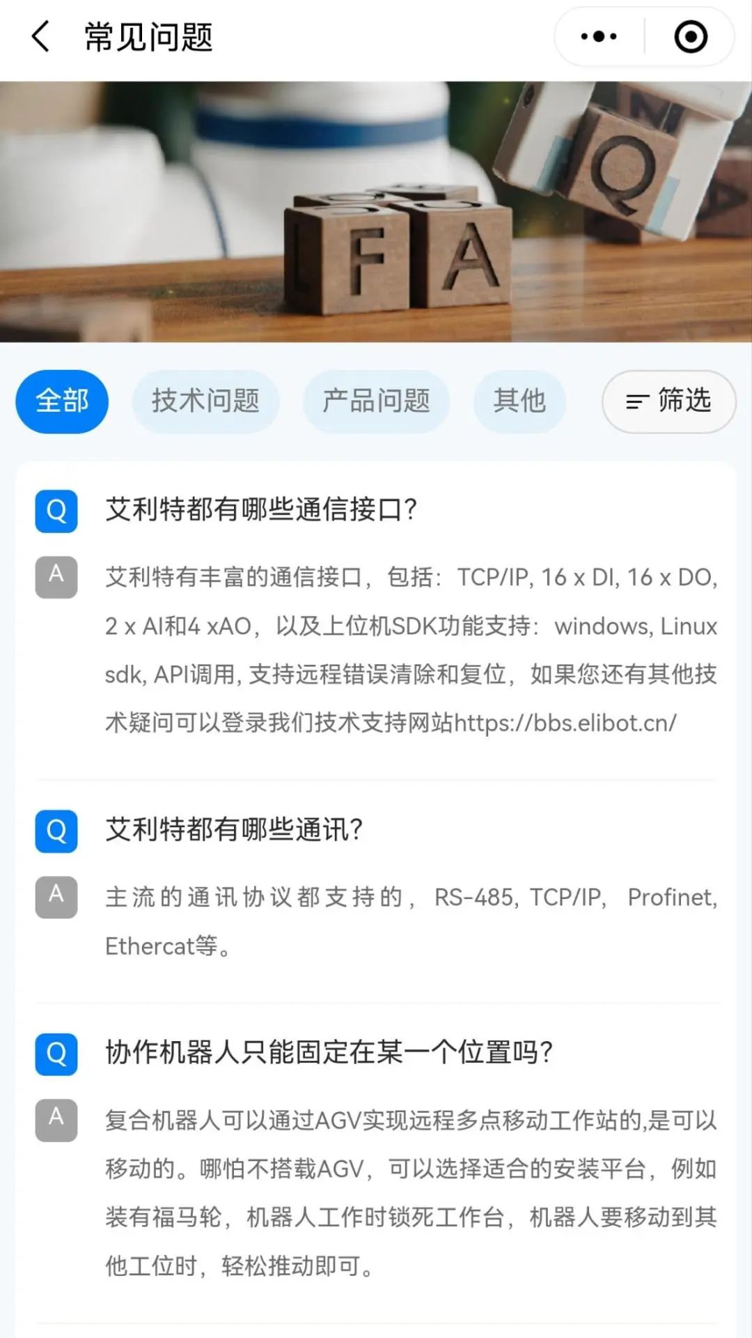 為幫助用戶更直觀了解金年會(huì)jinnian(金字招牌)誠(chéng)信至上協(xié)作機(jī)器人的操作注意事項(xiàng)及常見(jiàn)問(wèn)題解決方法,小程序還設(shè)置【常見(jiàn)問(wèn)題】板塊,讓解決問(wèn)題快人一步!