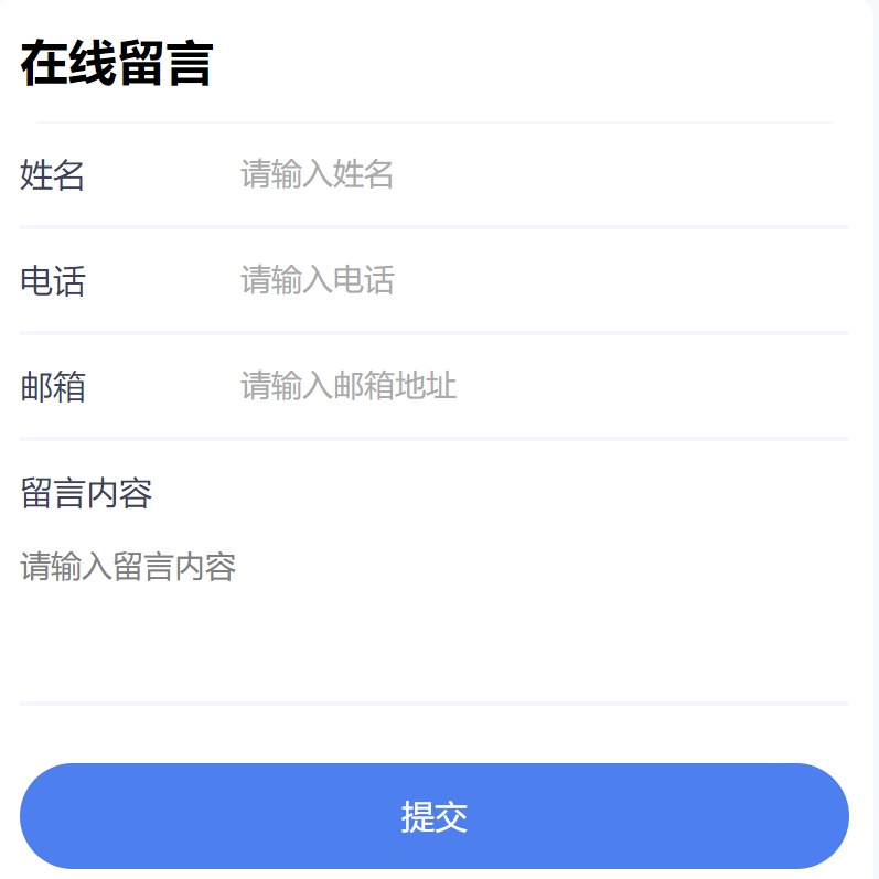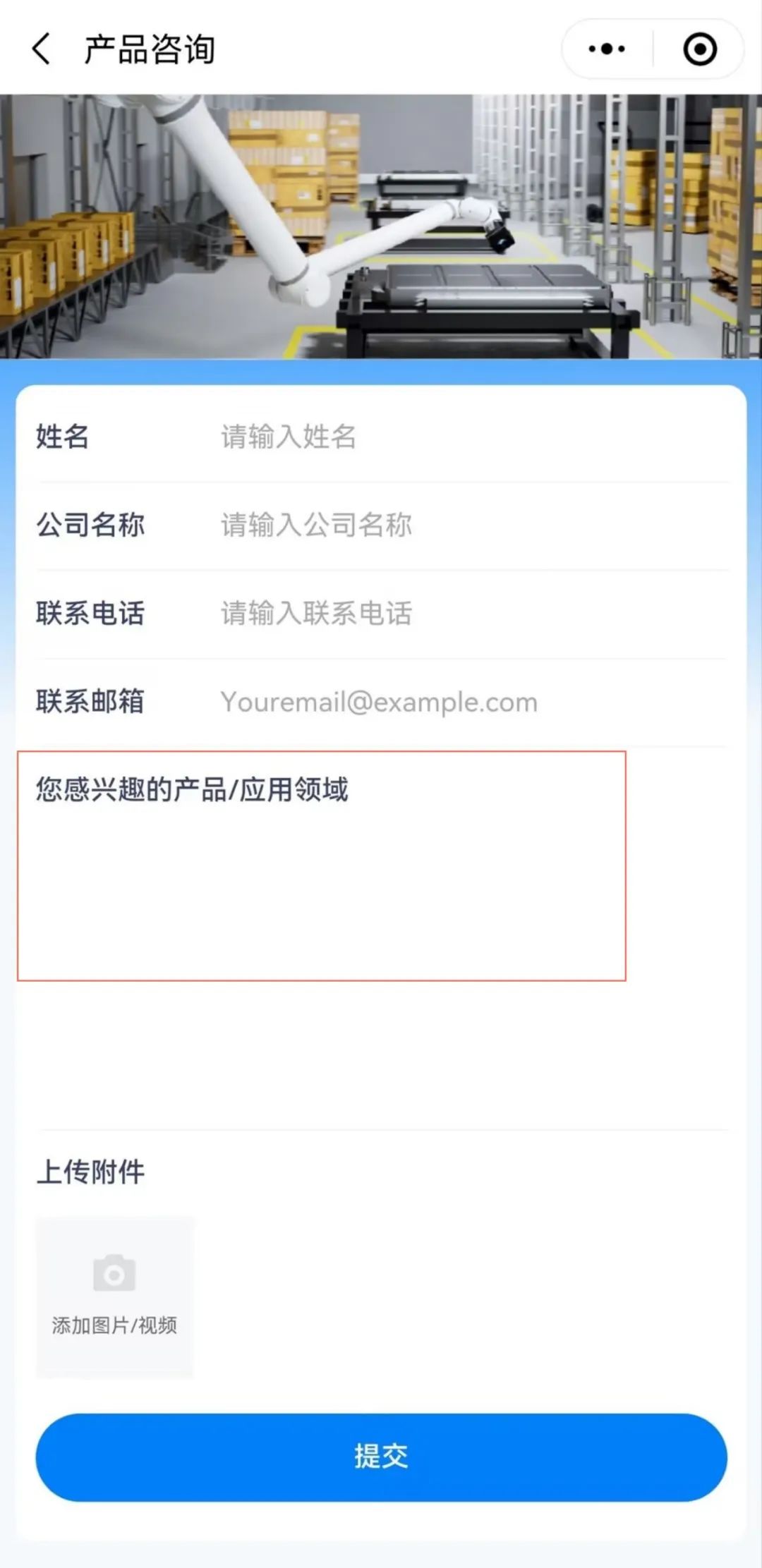 產(chǎn)品咨詢提交界面