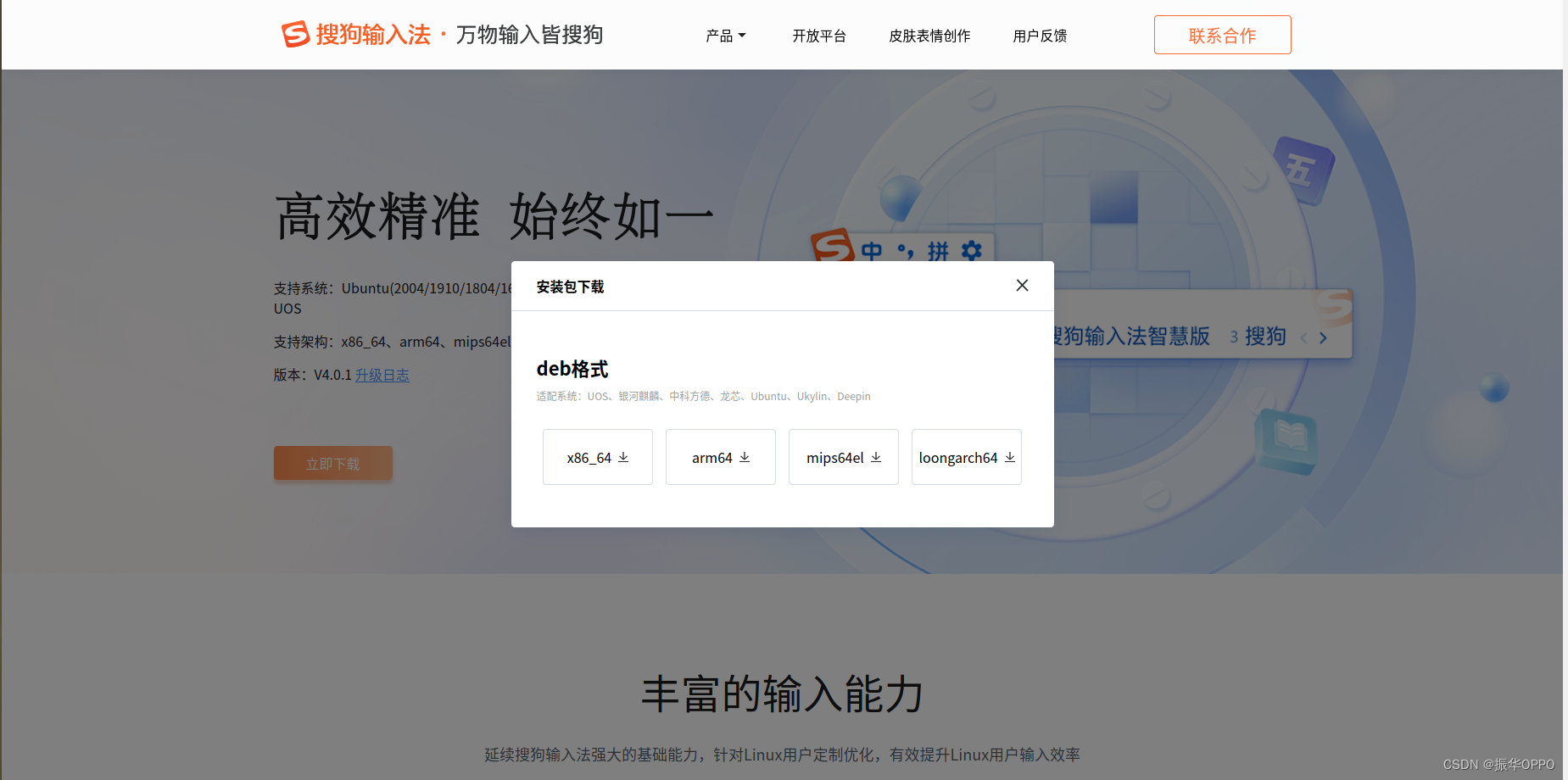 進(jìn)入搜狗輸入法linux-首頁(yè),選擇適合你ubuntu架構(gòu)的版本download。