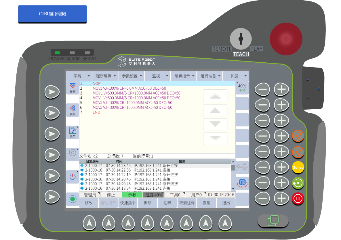 VNC是一款優秀的遠程控制工具,Elite_EC系列機器人內部已經集成VNC服務器,用戶可以通過網線鏈接即可在電腦上進行查看、控制機器人的示教器界面。