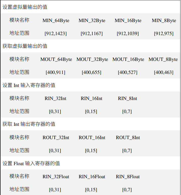 模塊功能及對應(yīng)的控制器的 M 變量或 profinet 寄存器的地址范圍具體如下:
