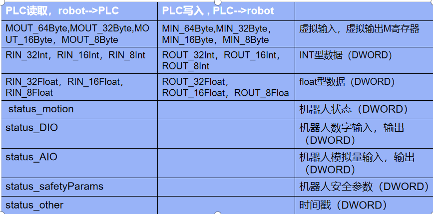 以上是機器人profinet通訊寄存器的地址以及可以讀取寫入的數(shù)據(jù)類型。