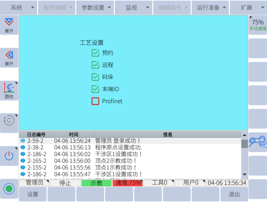 用戶可選擇“系統(tǒng) > 系統(tǒng)配置 > 機器人配置”,并勾選“Profinet”,啟用 Profinet 功能,如圖2-1所示。