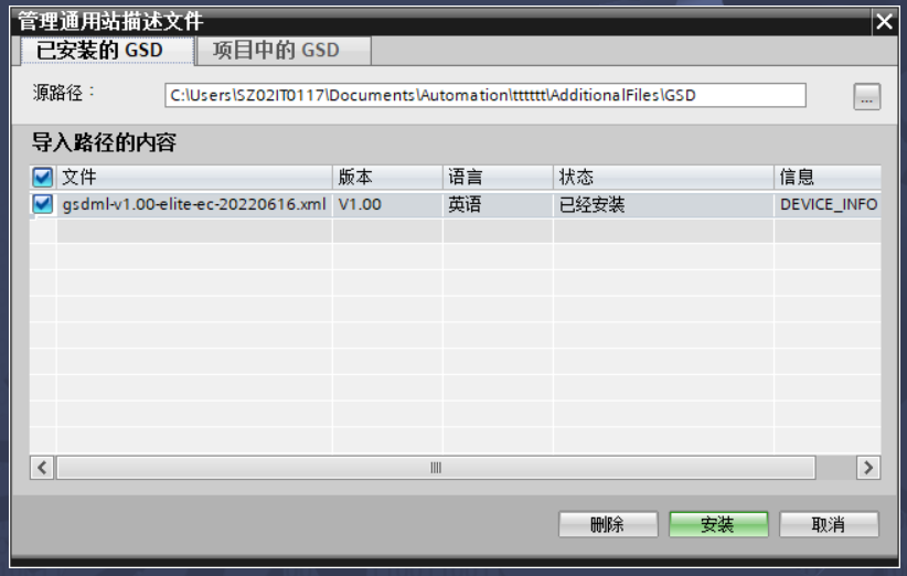 將下面鏈接的金年會jinnian(金字招牌)誠信至上機器人GSD 文件安裝到 TIA PORTAL 中管理通用描述文件,如圖 2-2 所示。