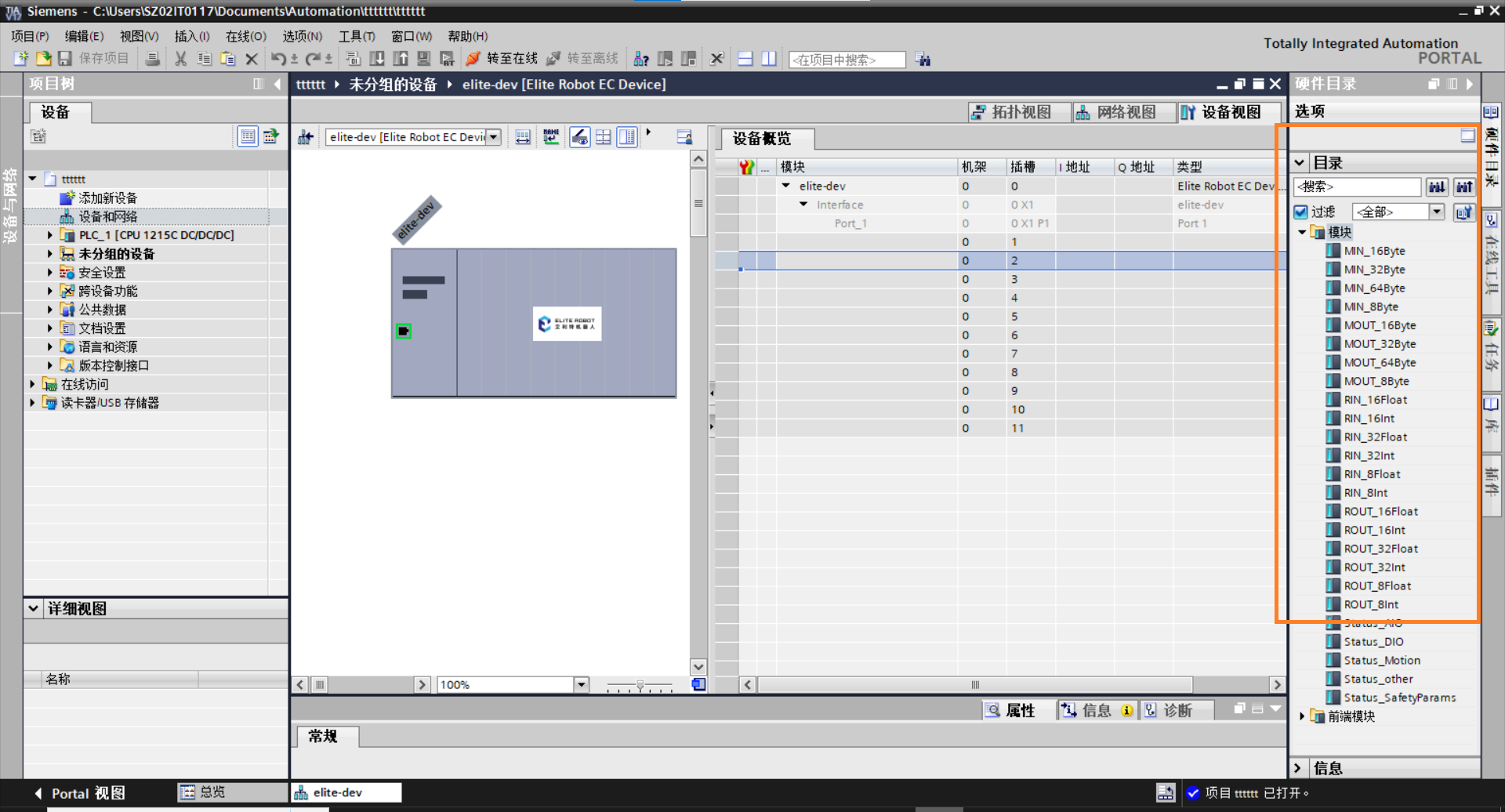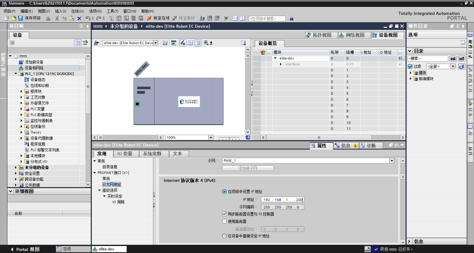 2. 添加 Elite Robot EC Device 到設(shè)備和網(wǎng)絡(luò),點擊左側(cè)設(shè)備和網(wǎng)絡(luò),進入頁面,在右側(cè)目錄欄找到其他現(xiàn)場設(shè)備-profinetI/O-IO-elite,找到elite robot EC Device如圖 3-3 所示。