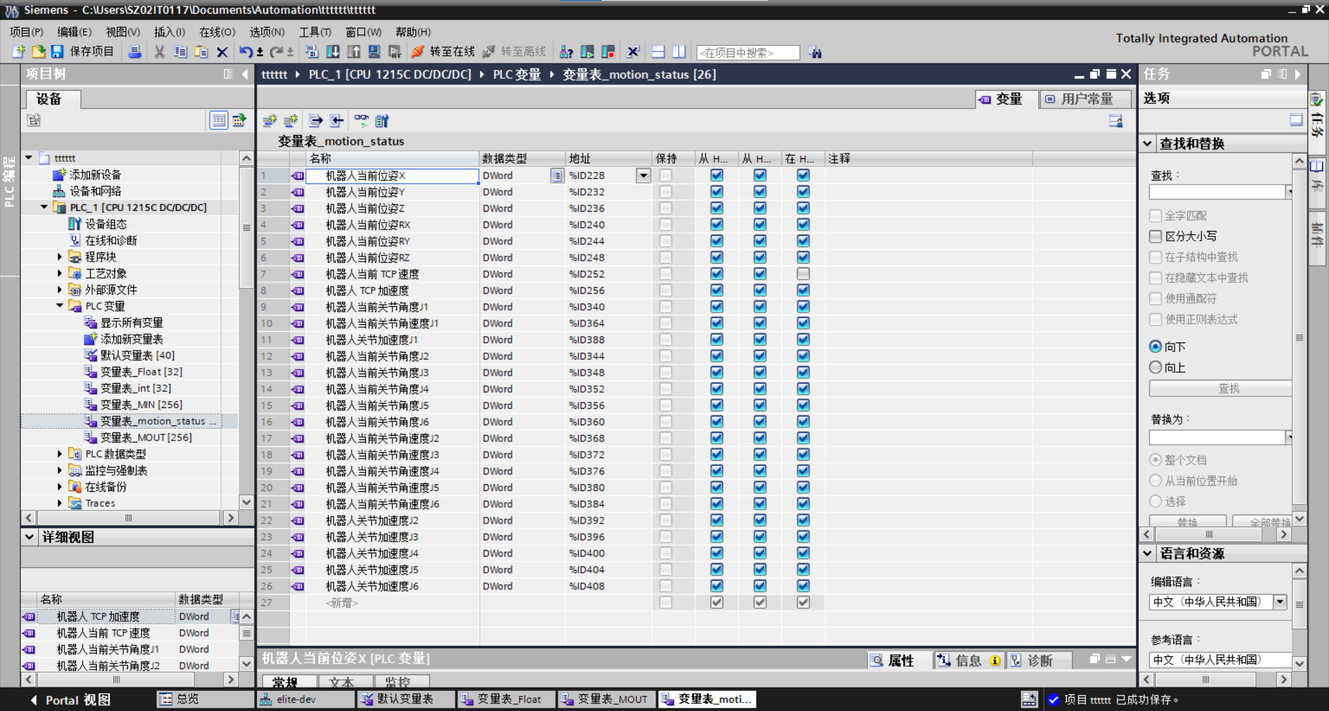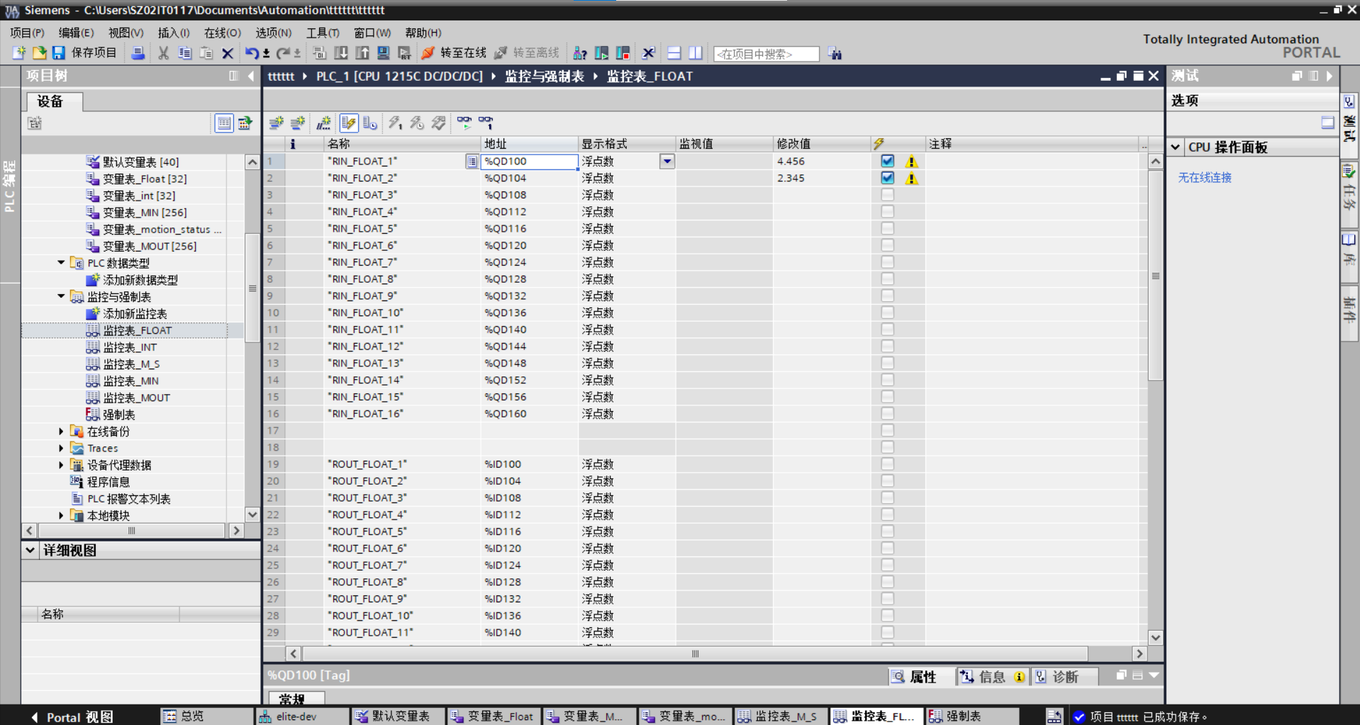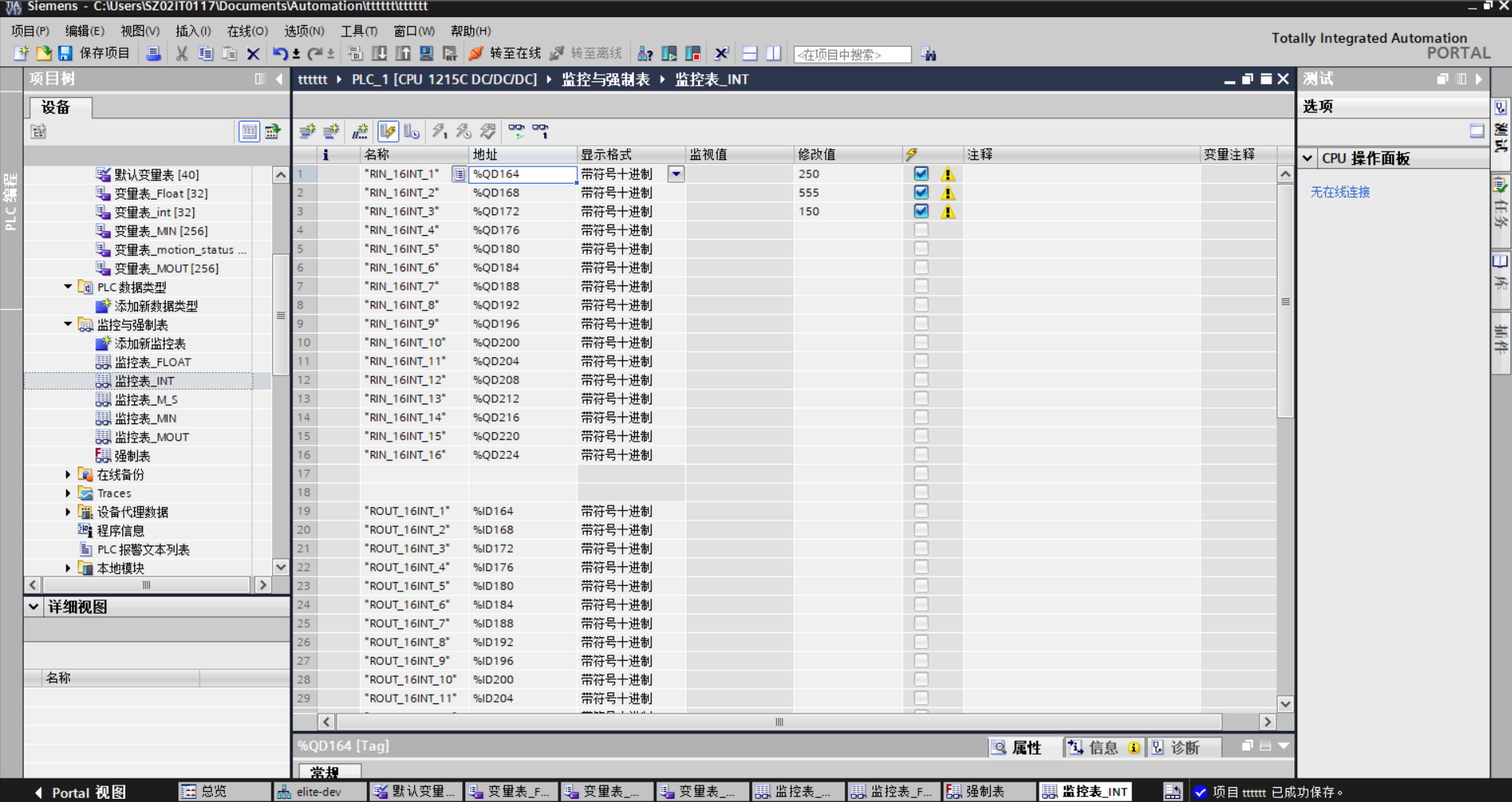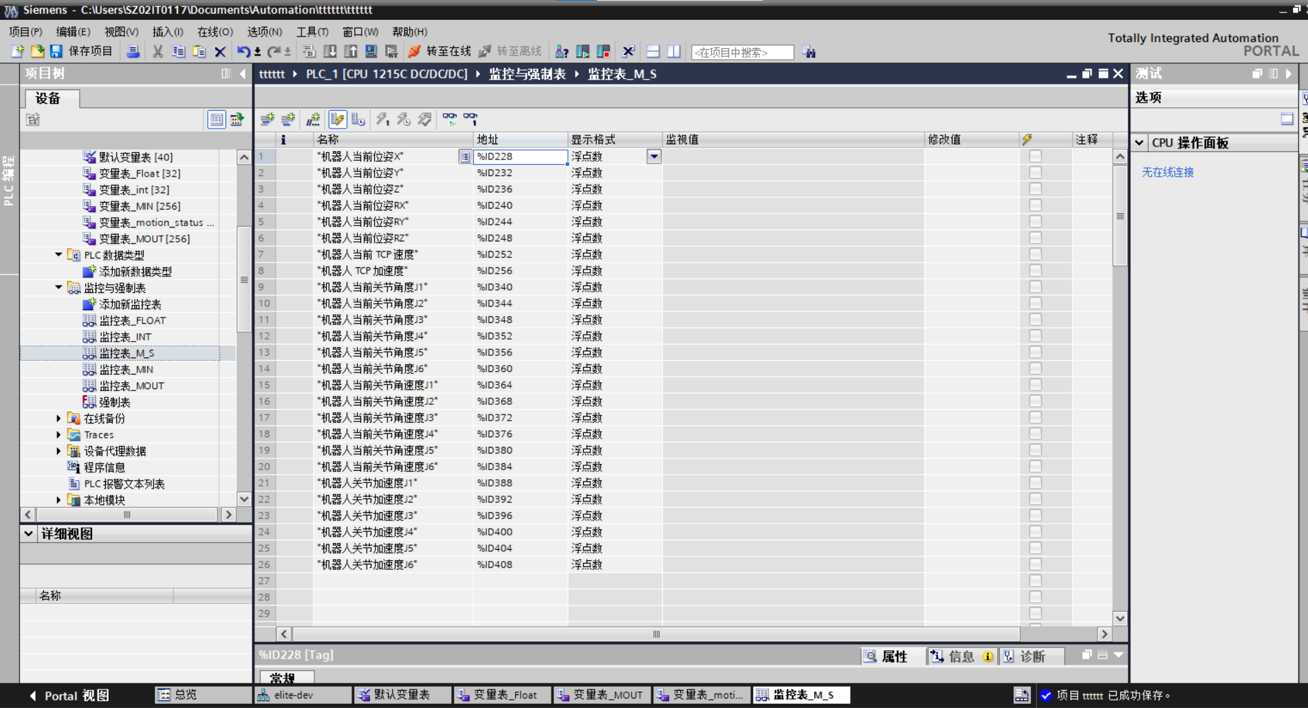 機器人端啟動腳本,plc開啟監(jiān)視即可看到輸入輸出值的變化。