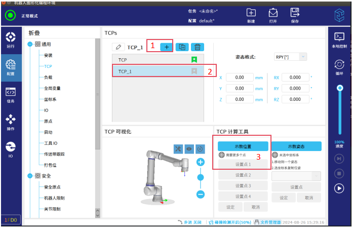 第三步:點擊“設置點”,保證工具的方向和對應的 TCP 與所選的坐標系重合,如圖-8標記3所示。