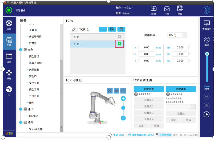第三步:4個點設置好后,如圖-6所示,點擊設定,新建的TCP就設置好了。如圖-7兩個紅框標記所示,新建的TCP_1與基座標系方向不同。