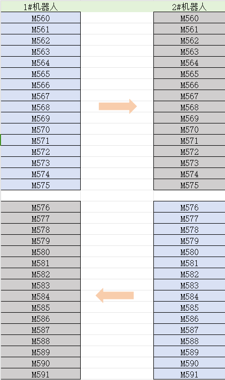 例如1#機(jī)器人的M560-M575作為本機(jī)的輸出,寫入2#機(jī)器人的M560-M575的值。