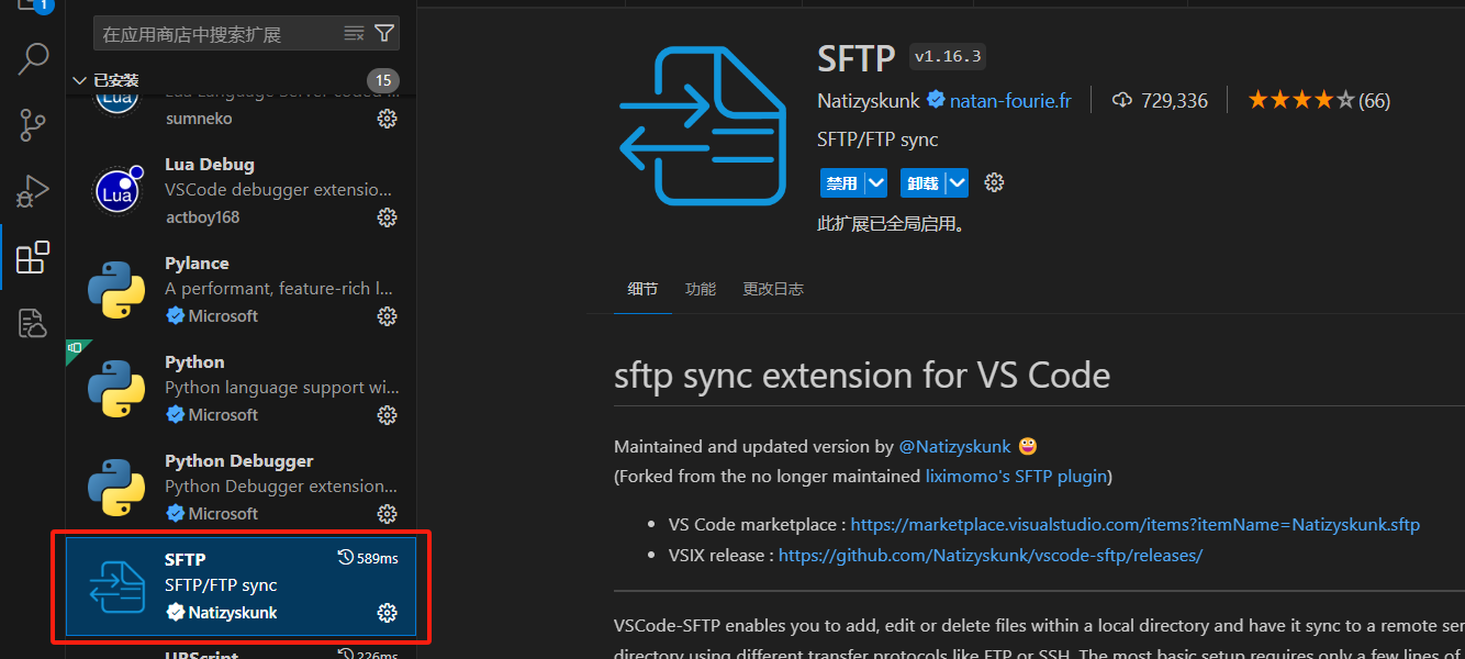 并打開并輸入快捷鍵ctrl+shift+p打開命令行,輸入sftp:list,選擇對應ip地址,以及文件夾,選擇對應文件