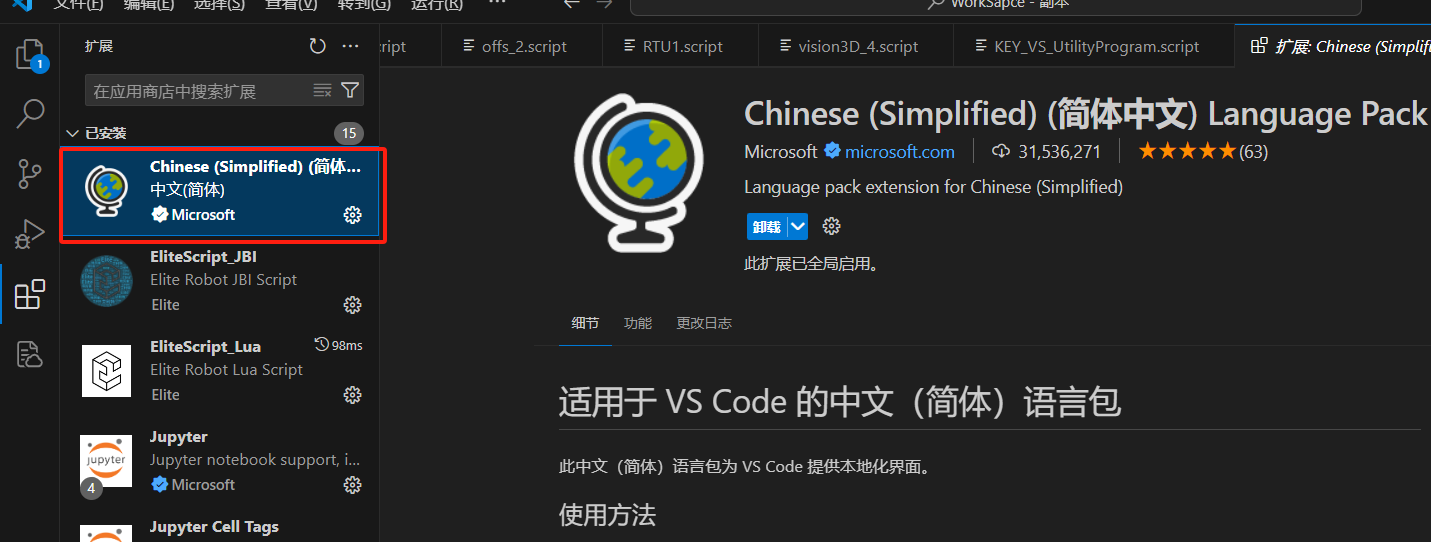 中文漢化包-Chinese (Simplified) Language Pack for Visual Studio Code