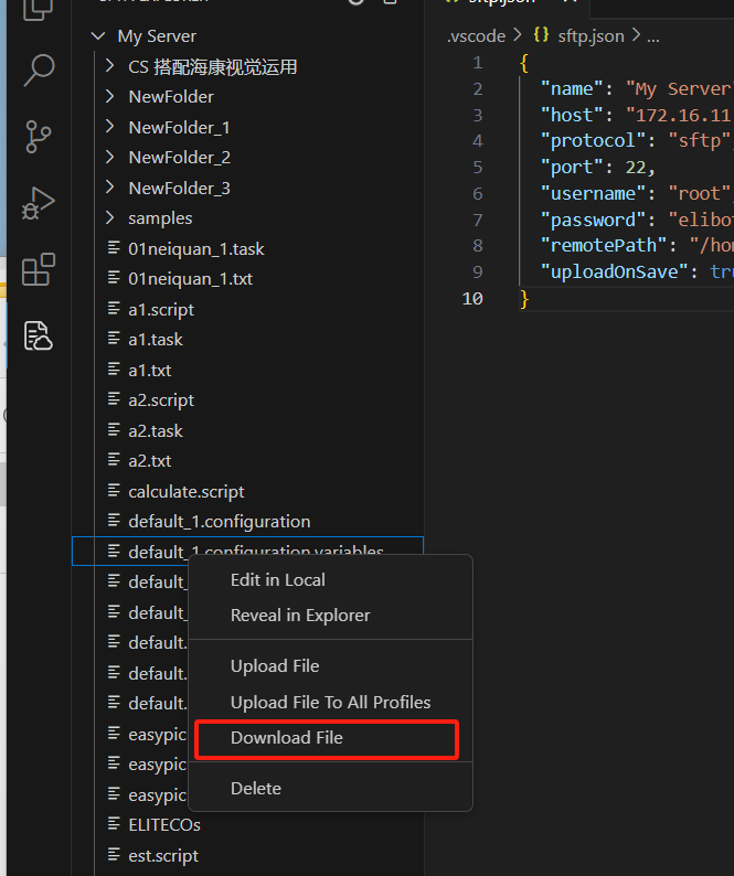 下載或者上傳文件需保證當前文件夾下有創(chuàng)建的SFTP配置文件夾