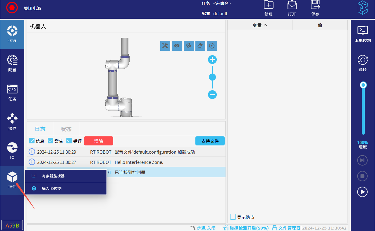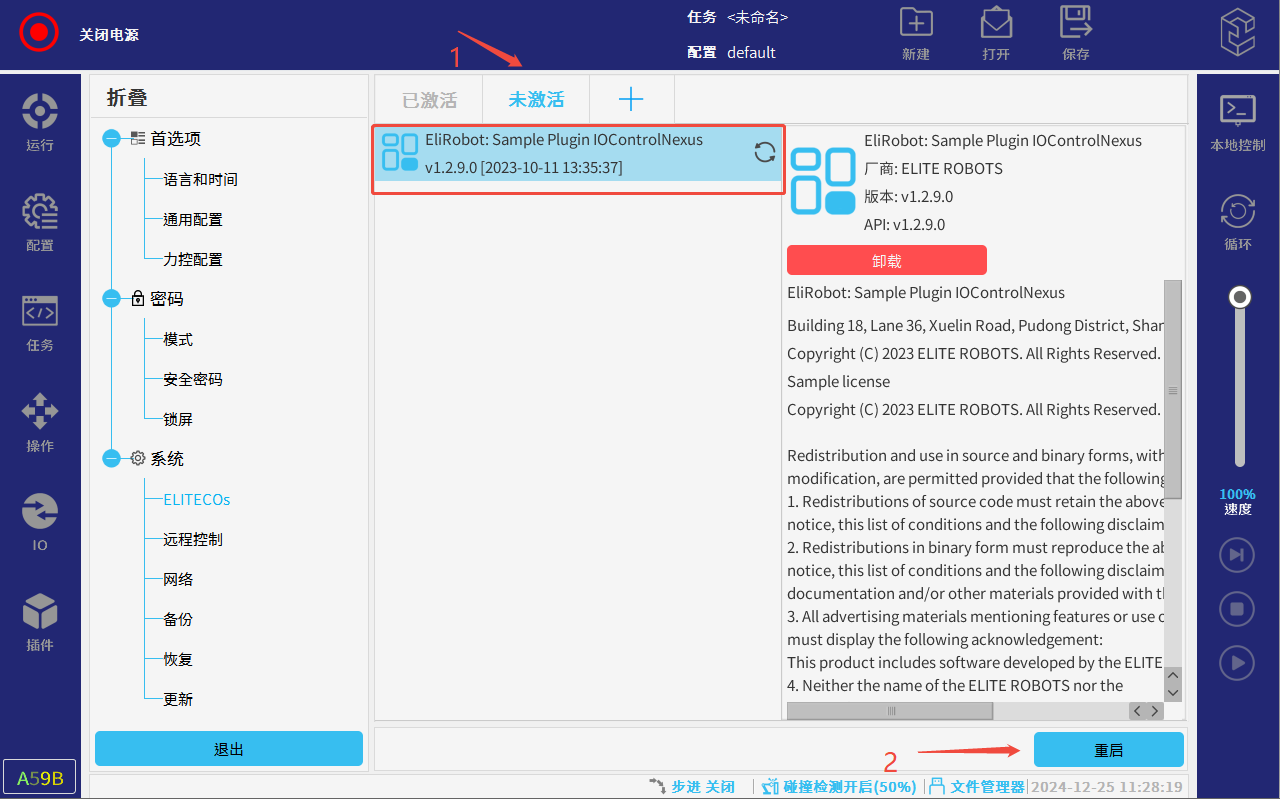 把插件放在U盤插入示教器U盤接口,點擊右上角ELITE圖標,再點擊設置(需要的相應插件請聯系ELITE技術人員)