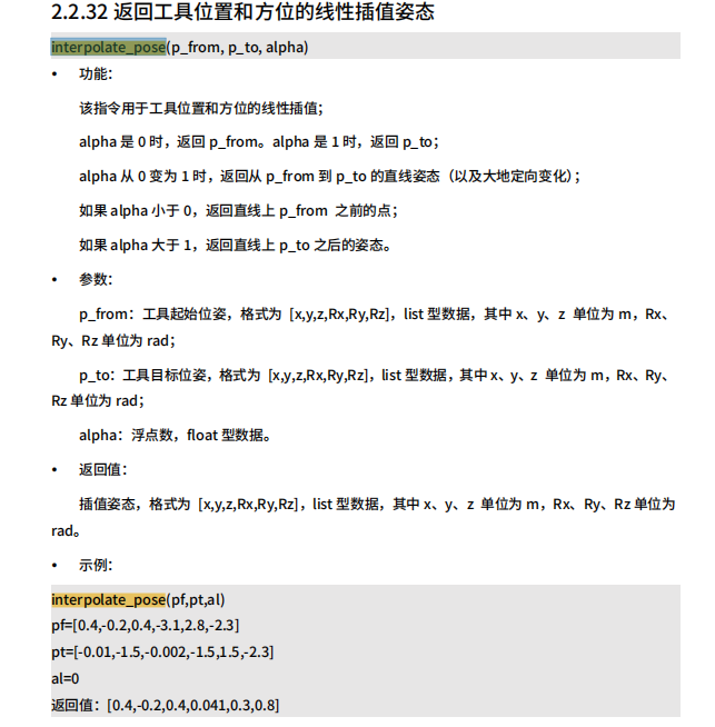 interpolate_pose此指令適用于有規律/等間距的矩陣 只需示教四個頂點點位即可完成矩陣取放物料,可以用于外部設備隨機發送矩陣取料/放料位置 機械手實現矩陣抓取