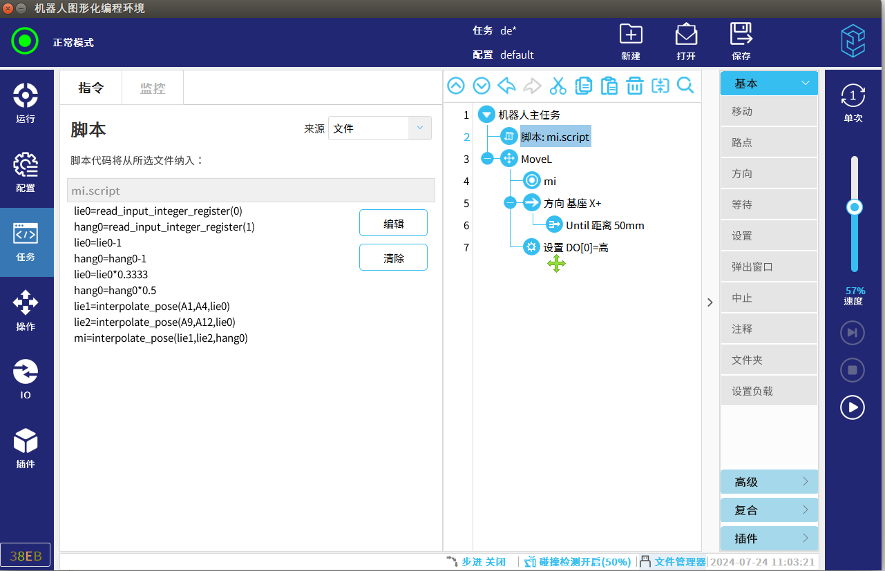 (3)本次演示使用默認大地坐標系 TCP 夾具任意姿態安裝 此指令只是用終止點——起始點除以點位間隔 無需在意末端姿態