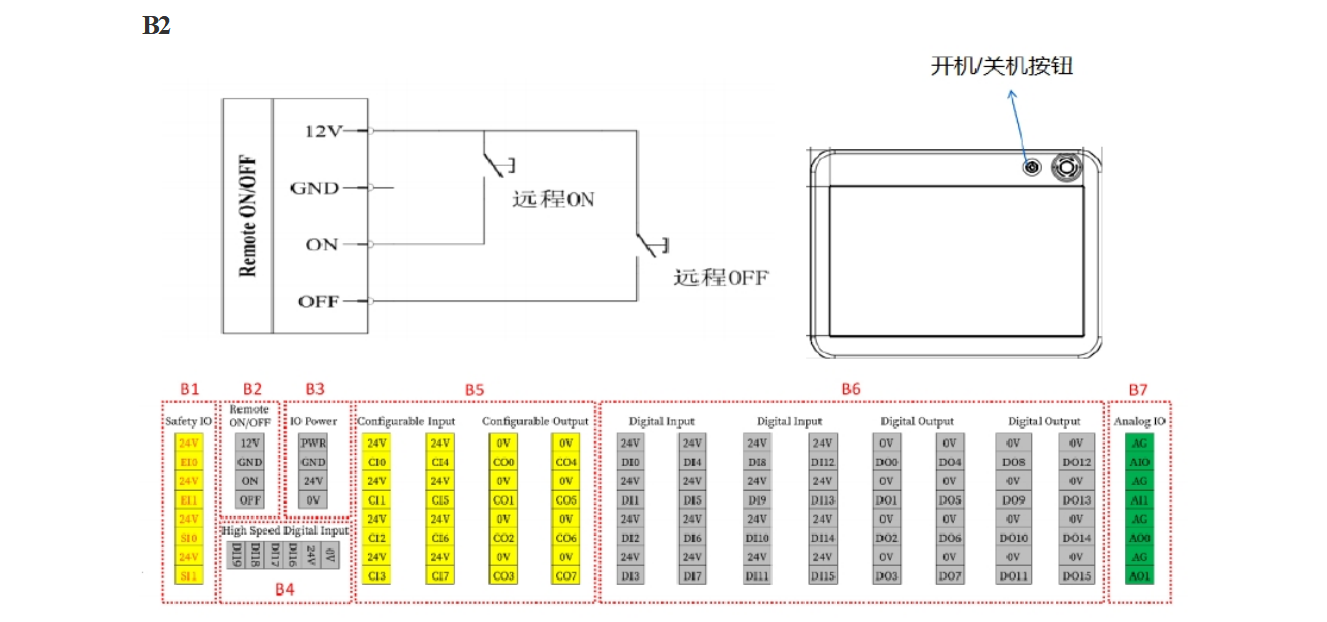 2.點擊示教器上的開機按鈕(可以通過接線實現,如下圖)