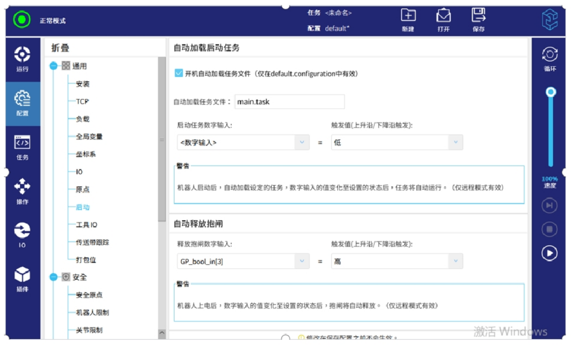 自動釋放抱閘配置后,機器人收到這個上升沿信號后,會依次打開電源,釋放抱閘,若已經打