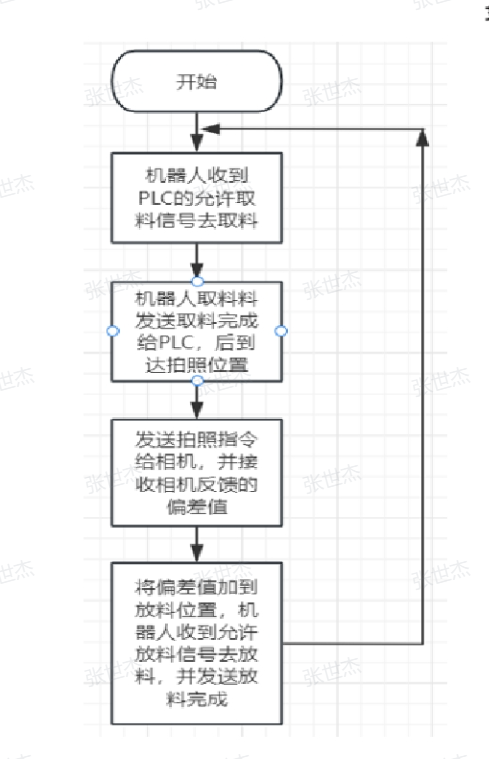 機器人到固定位置取料,然后去拍照,獲取偏差值或者絕對值,以此來調整放料位置