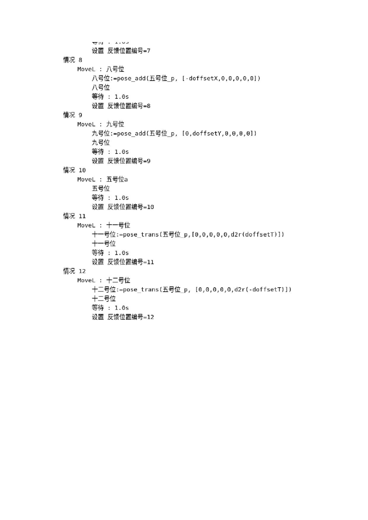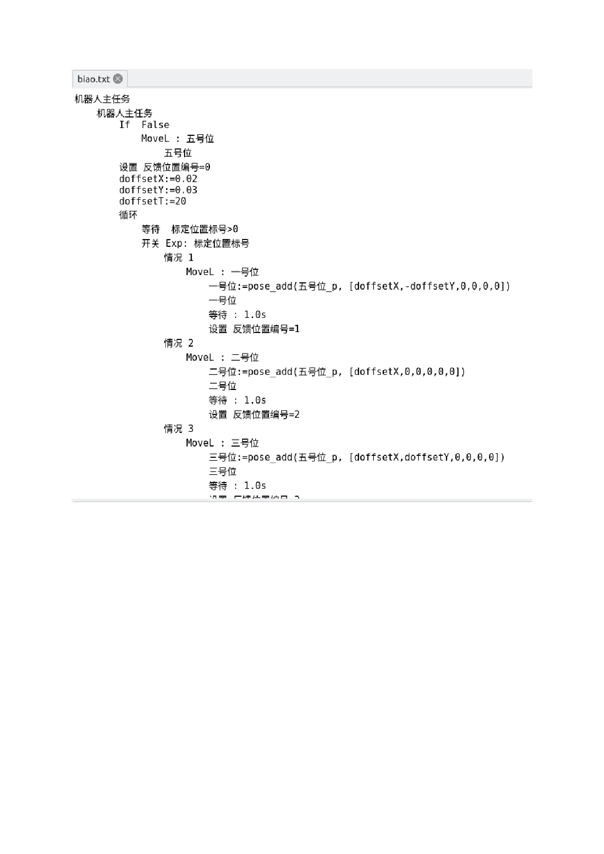 基準位上加上視覺發過來的偏移量(dx,dy,rz),到達糾偏后的取料位。程序如下圖 。
