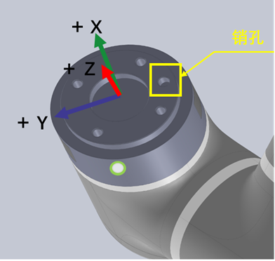 對于重心設置默認在法蘭盤中心位置,可查看銷孔位置以辨別出末端工裝的重心是朝向那個方向,從而設置對應的參數。