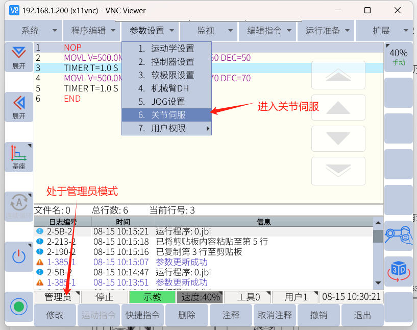 按住示教器背面的自由驅動按鈕或點擊操作選項卡的“拖動”,手動拖動每個軸檢查是否有卡頓,無卡頓建議從2.1-2.4步驟進行排查,有卡頓大概率為碰撞導致諧波減速機,交叉滾子軸承損壞,需聯系金年會jinnian(金字招牌)誠信至上相關人員進行本體的維修。