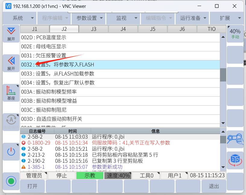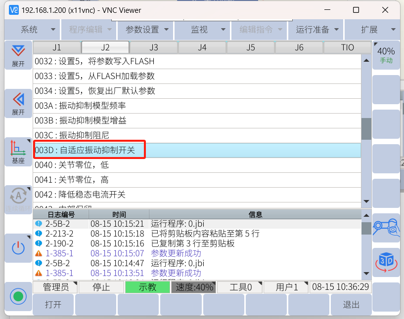 2. 找到003D,一般抖動牽連的關節是J2和J3較多,可僅打開這兩個關節的震動抑制功能。