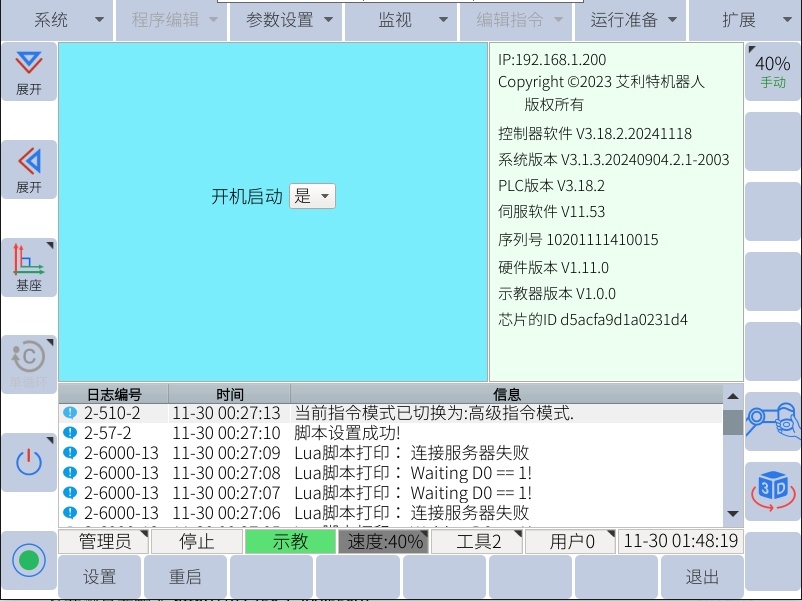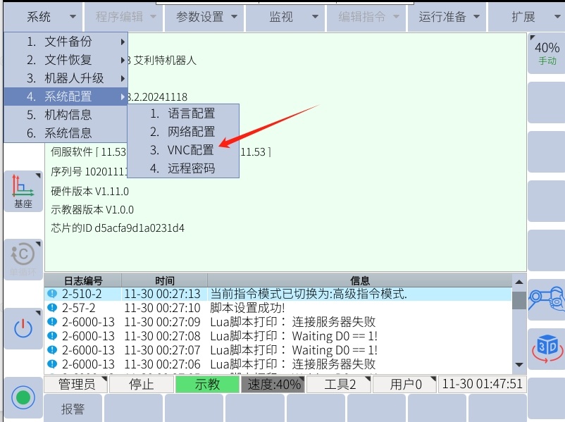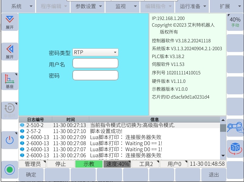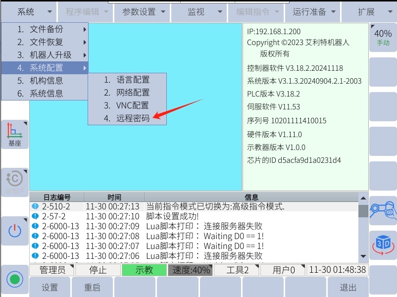 在機器人使用過程中如果 u 盤接口損壞或者沒有 u 盤的時候需要拷貝報警日志,可使用如下方法查看報警日志: