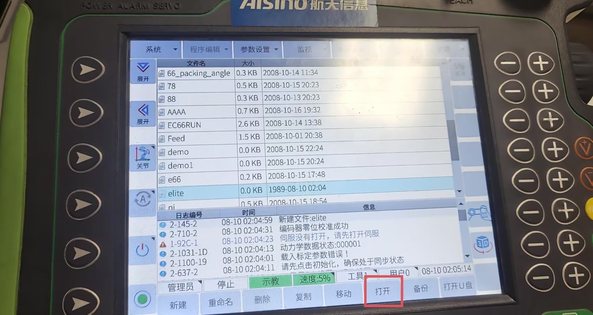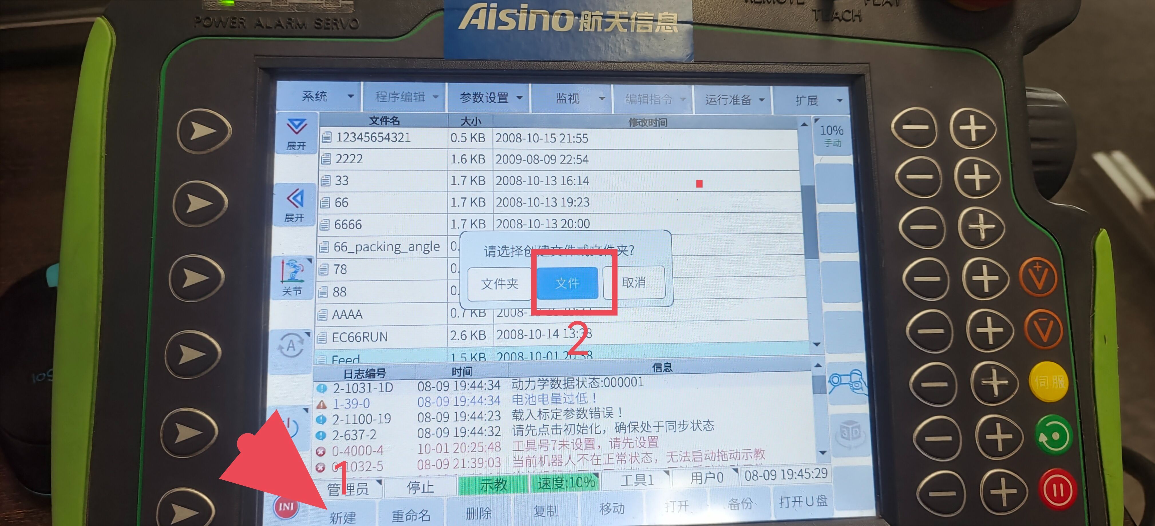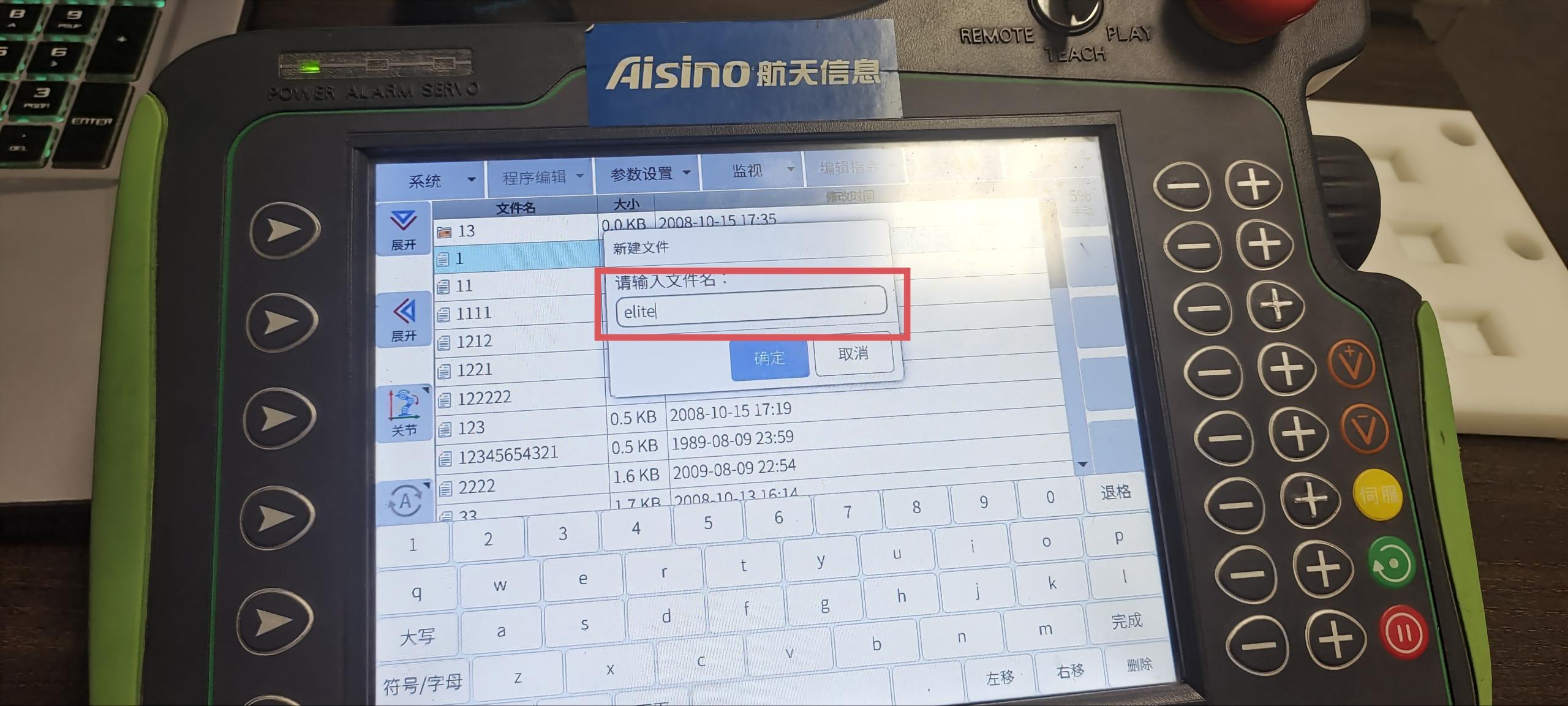 在示教器主頁(yè)面下點(diǎn)擊左下角新建-文件-輸入文件名-選擇并打開(kāi)