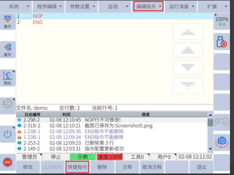 1.在程序編輯頁(yè)面,將光標(biāo)移動(dòng)到要插入指令位置的前一行。