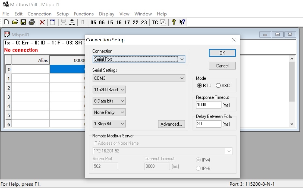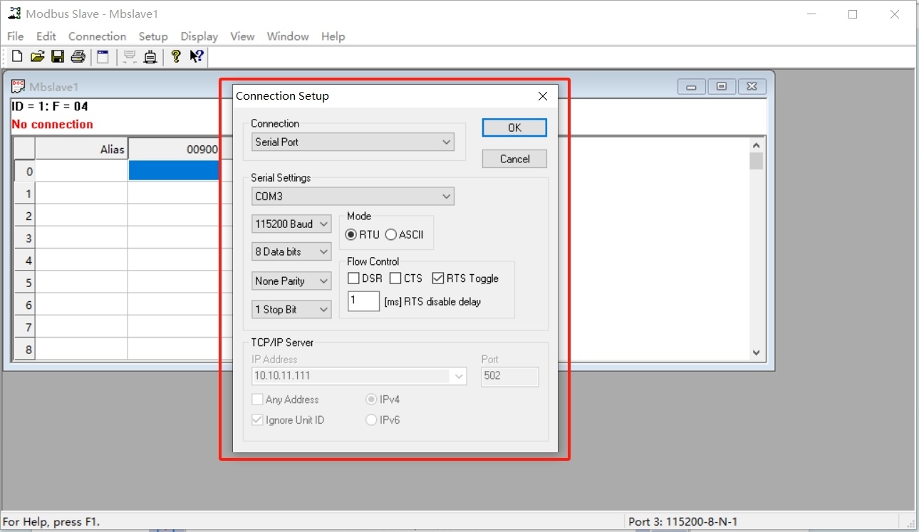 將機(jī)器人端485線接好,目前波特率為115200,助手端連接對(duì)應(yīng)設(shè)置參數(shù)即可,如下圖所示