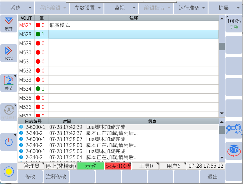 1. M0-M527,M1472-M1535為系統(tǒng)使用,只能讀取狀態(tài),通過示教器可