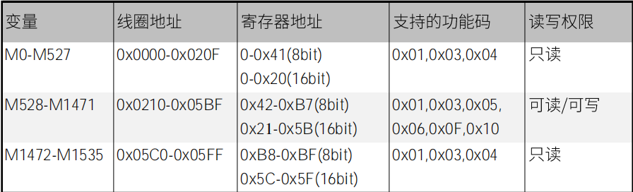 4. ModBus 協(xié)議中一個(gè)寄存器為 16 位變量,因此對(duì) M 變量的一個(gè)寄存
