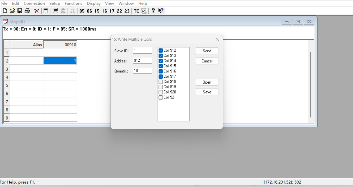 定義網(wǎng)絡(luò)助手端線圈912-917寫入為1