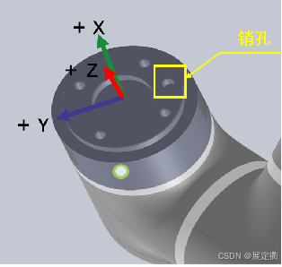2. 注意安裝方向,力控傳感器的X,Y,Z方向要與機械臂的工具坐標系方向一致,可以參考下圖確認安裝方向