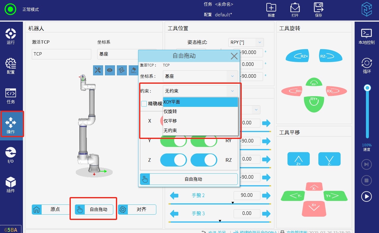 打開拖動界面,選擇拖動限制,僅平面,僅旋轉,無約束。