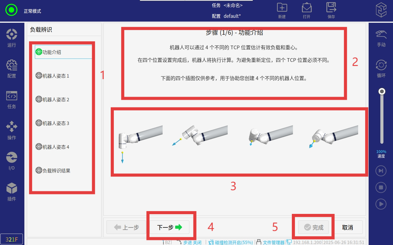 3. 按照下圖中所示機械臂位姿,設置4個不同的點位,設置好后點擊完成即可。
