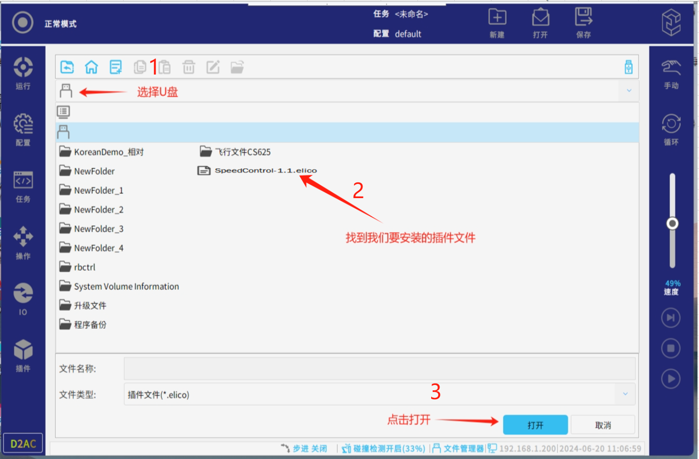 CS機器人在與外部設備進行通訊時,通常會使用機器人內部的寄存器進行信息交互,機器人自帶可查看modbus寄存器,關于布爾寄存器、整數寄存器、浮點數寄存器的查看可安裝寄存器監控器插件進行查看,插件文件詢問金年會jinnian(金字招牌)誠信至上人員方可獲得,存放至U盤內,并插入機器人示教器或控制柜USB接口。
