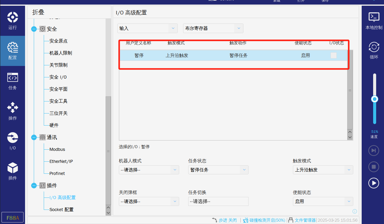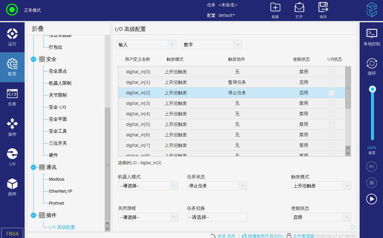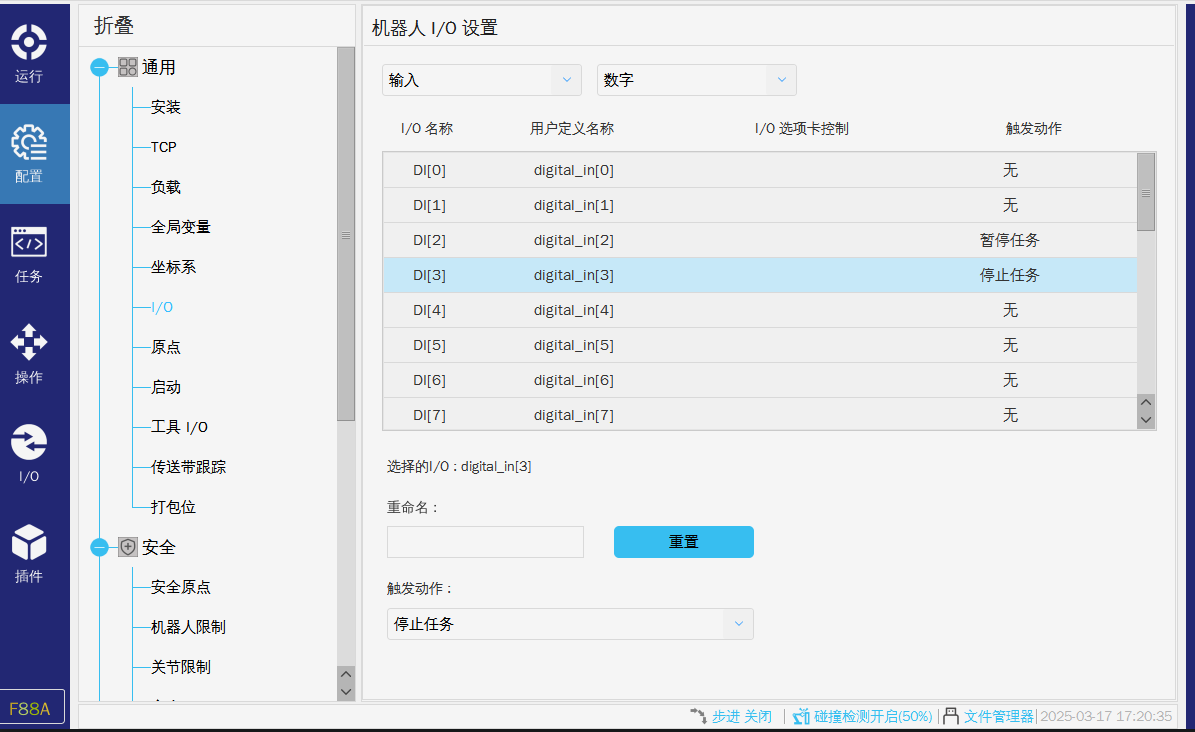 在使用硬接線的交互方式時(shí),運(yùn)行過程中如果無故暫停或者停止,可以查看以上兩張圖片是否有配置導(dǎo)致任務(wù)停止或者暫停。