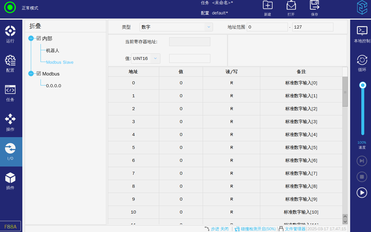 5. 查看IO信號(hào),modbus,通用寄存器信號(hào)。