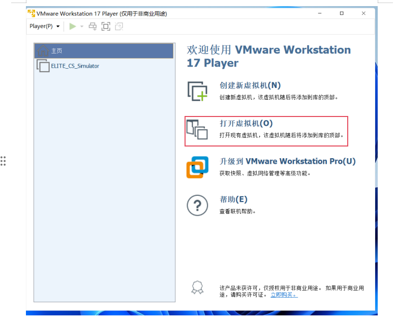 2.4.1打開(kāi)下載好的VMWare軟件,點(diǎn)擊“打開(kāi)虛擬機(jī)”,如圖-4所示