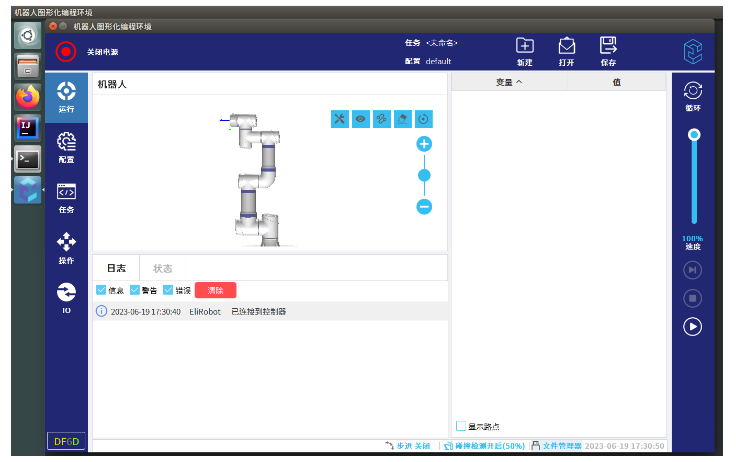 在沒(méi)有機(jī)器人實(shí)物時(shí)我們可以通過(guò)虛擬機(jī)把我們的程序先編寫(xiě)出來(lái),這樣在項(xiàng)目現(xiàn)場(chǎng)時(shí)就不需要再用時(shí)間去進(jìn)行程序的編寫(xiě)了,可以加快項(xiàng)目進(jìn)度。同時(shí)在不方便使用示教器實(shí)物查看程序時(shí)我們也可以通過(guò)虛擬機(jī)去查看程序。在驗(yàn)證一些功能,做一些測(cè)試時(shí)同樣也可以在虛擬機(jī)上進(jìn)行。