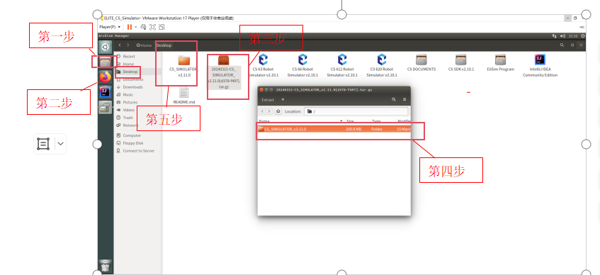 第三步:將下載好的機(jī)器人虛擬機(jī)文件粘貼在“Desktop"中,并雙擊機(jī)器人虛擬機(jī)文 件壓縮包,就會(huì)出現(xiàn)圖-19中的彈窗