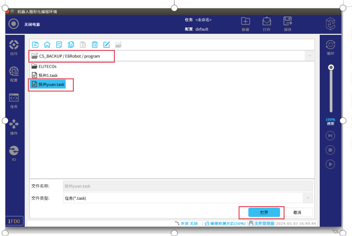 2.6.3在虛擬示教器中打開(kāi)備份程序文件