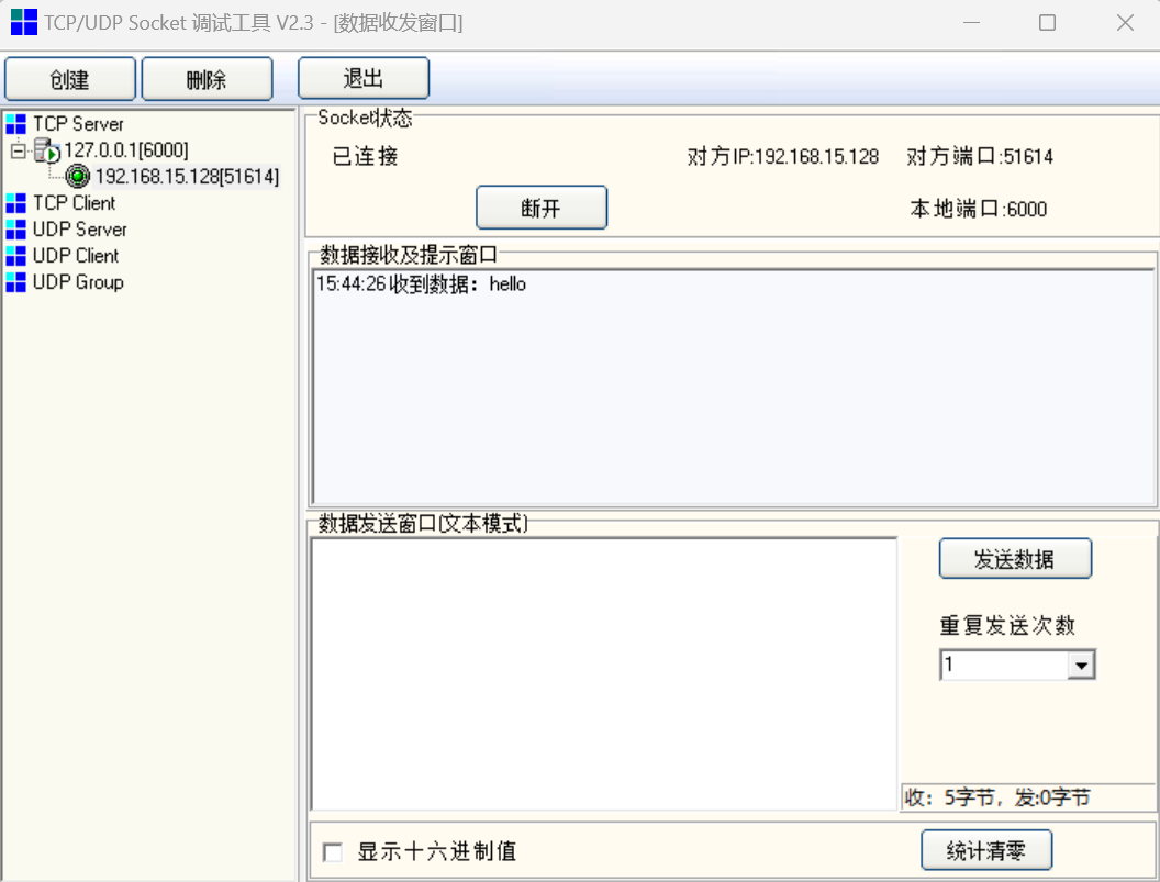 3. 本機 SocketTool ,創建一個服務器,端口6000。