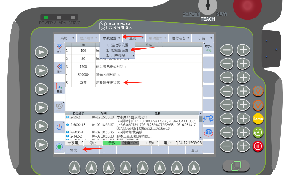 首先在示教器設(shè)置斷開(kāi)選項(xiàng),路徑:參數(shù)設(shè)置 - 控制器參數(shù) - 示教器連接狀態(tài) - 修改 - 斷開(kāi)