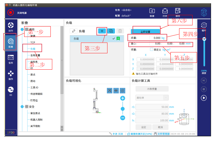 2.2CS機器人負載以及重心的設置,按照圖-5所示操作步驟操作