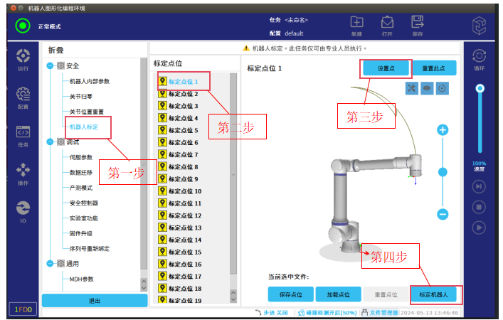 第四步:將20個點位都設置好了之后,點擊“標定機器人”即可,這樣機器人標定就完 成了