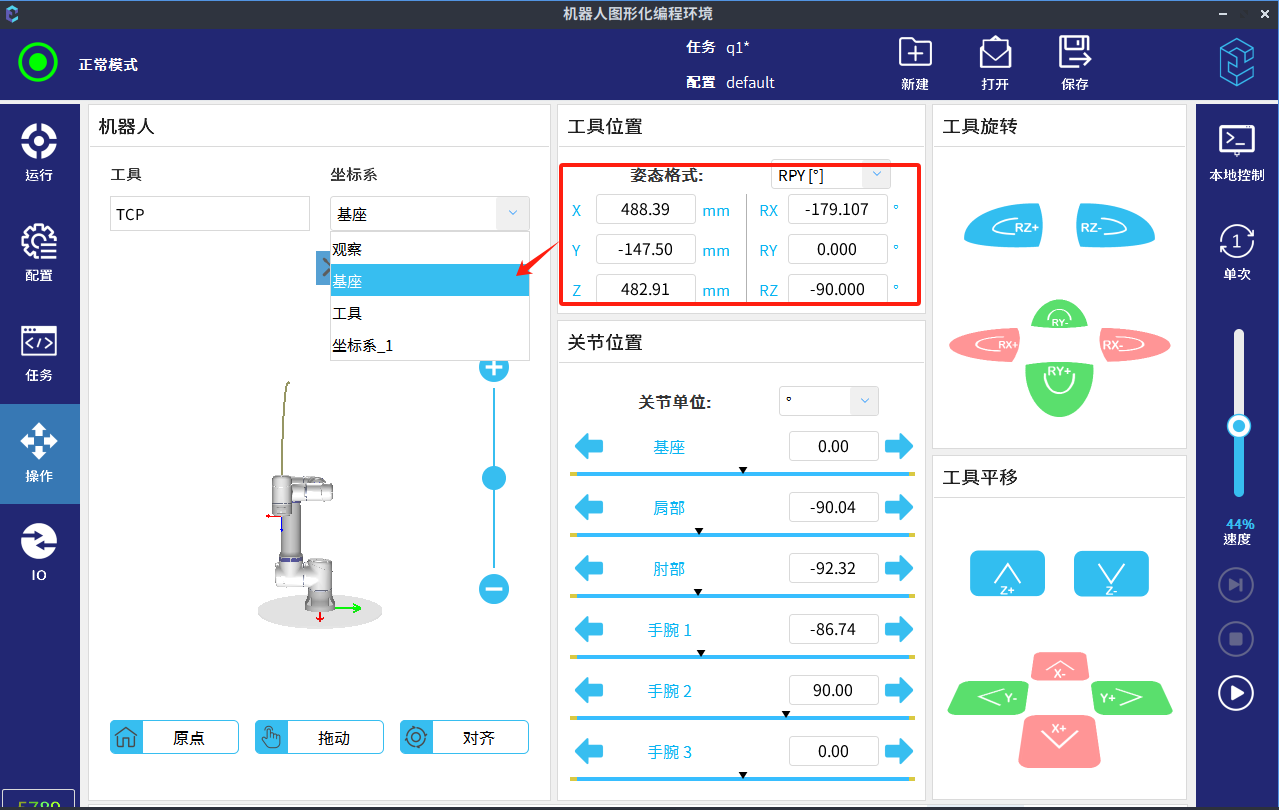 機器人中獲取的位姿數據單位,X Y Z是M米為單位,RX RY RZ是以rad弧度為單位;所以在運行點位數據時也同樣需要注意將計量單位轉換為M米和rad弧度。