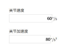 (圖2-1 關(guān)節(jié)速度230°/S 關(guān)節(jié)加速度1200°/S?) (圖2-2 直線速度1500mm/s 直線加速度10000mm/s?) (圖2-3 整體運(yùn)行倍率100%)