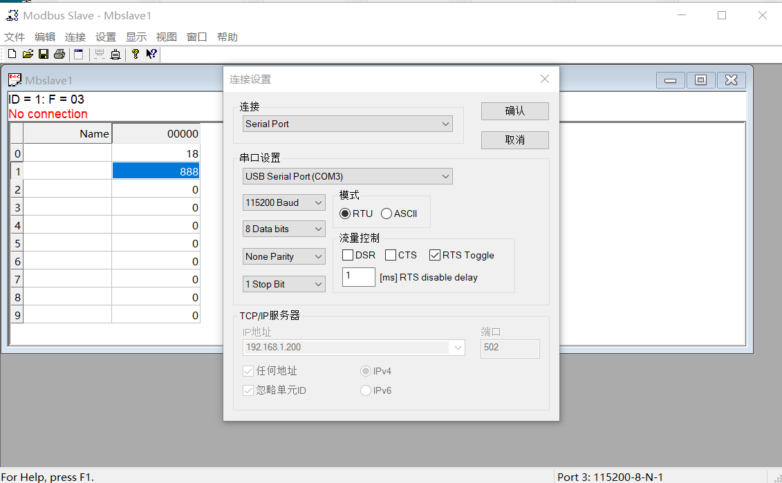 8:串口的位寬 ,modbus_rtu則必須為8
